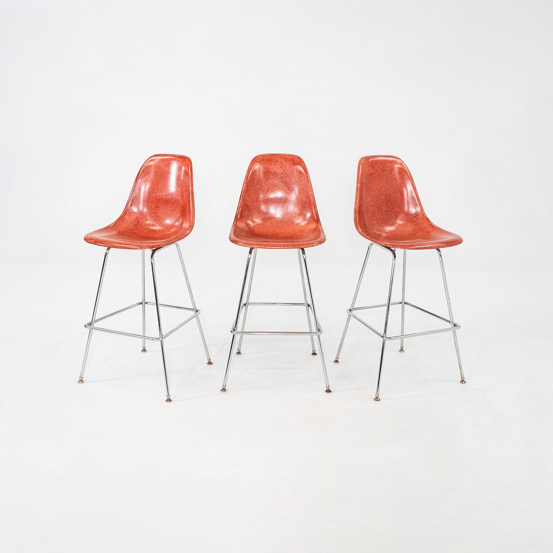 2010s Eames Modernica Bar Stool in Steel and Orange Red Fiberglass 13x Available