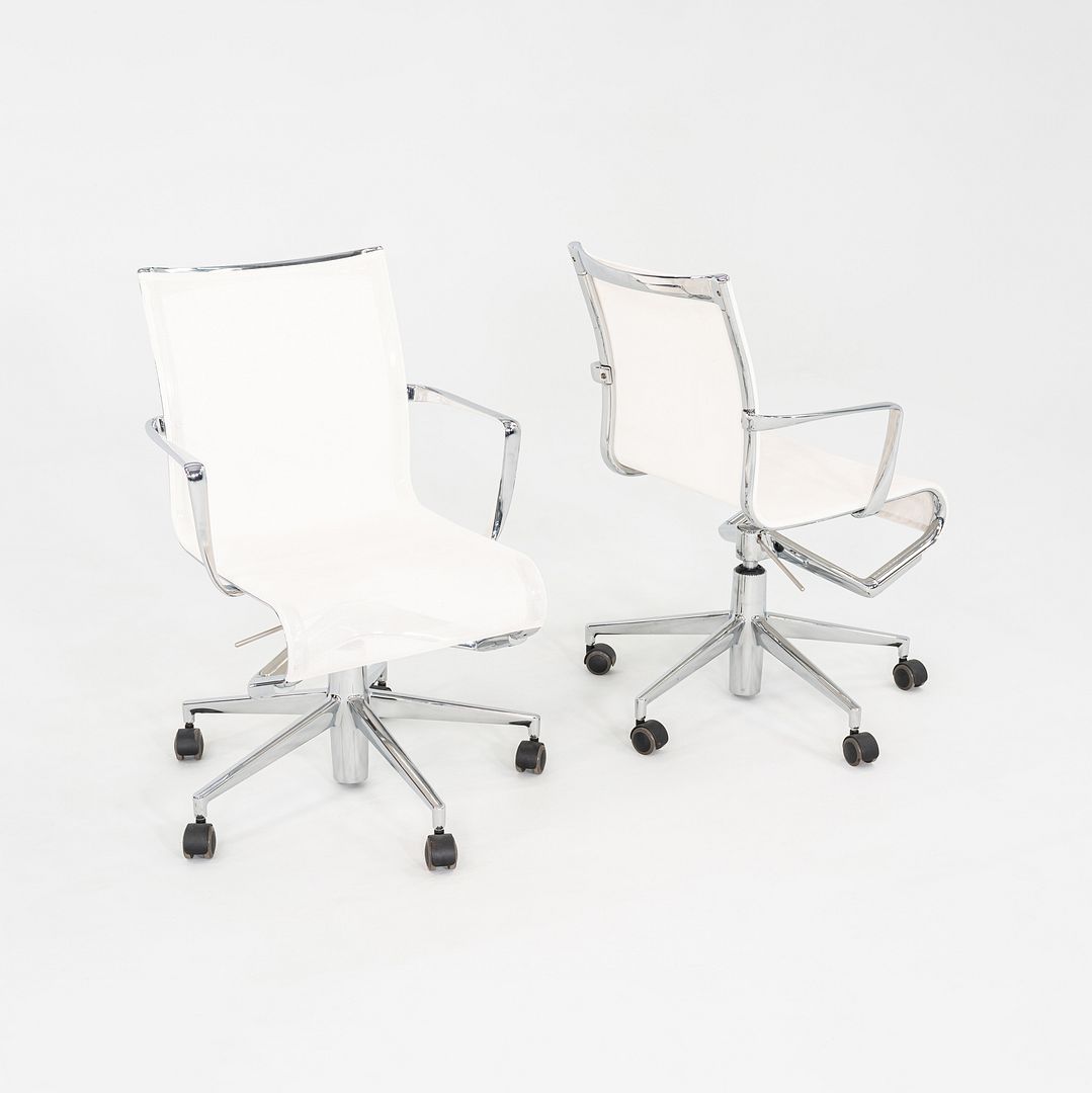 This is a Rollingframe 44 Chair, originally designed by Alberto Meda for Alias in 1994. These particular examples were produced in Italy and date back to the year 2010. The chairs feature a lightweight aluminum fivev-star frame with a mesh seat and backrest, offering both ergonomic support and a refined, modern aesthetic.