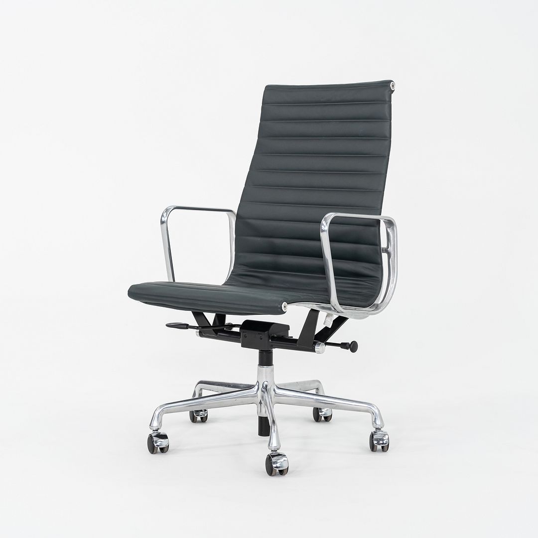 2010s Herman Miller Eames Aluminum Group Executive Desk Chair Dark Green Leather