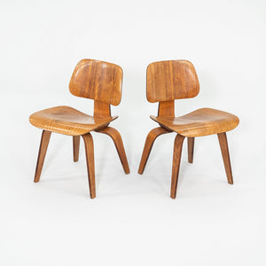 1946 Pair of Eames Evans DCW Dining Chairs in Calico Ash Wood