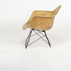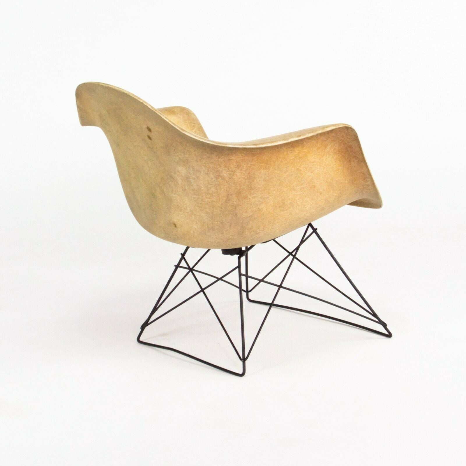 Listed for sale is an exceptionally rare and original LAR lounge chair, designed by Ray and Charles Eames, produced by Herman Miller. This example dates to circa 1954 and was in production as one of the five introductory base styles when the fiberglass shells were introduced in 1950. This particular chair has a gorgeous original black base with somewhat yellow arm shell. It does not have a rope edge, which pushes in slightly later into the 1950s. These chairs have continued to become more and more difficult to find. Condition on this example is very good with some wear as to be expected. See photos for details.
