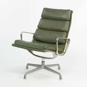 SOLD 1970s Herman Miller Eames Aluminum Group Soft Pad Lounge Chair in Green Leather