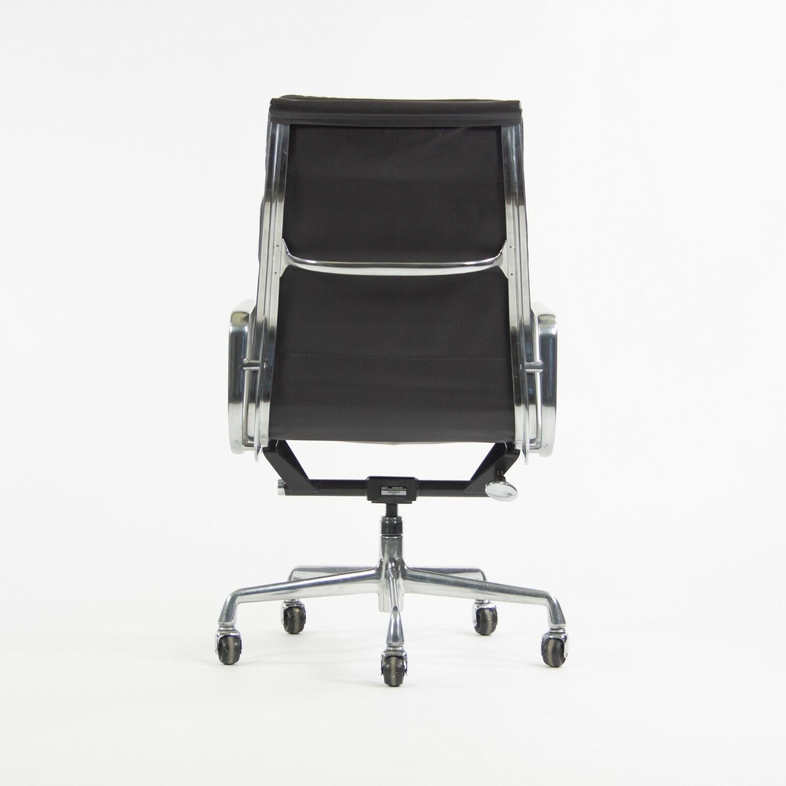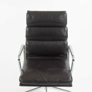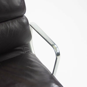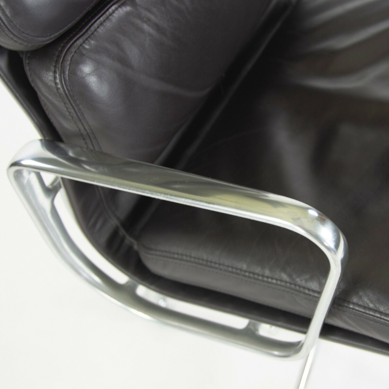 Listed for sale is a pair of (sold separately) vintage high back Eames soft pad chairs in eggplant leather. The chairs are in excellent vintage condition with some light wear from use. The chairs still retain their labelling underneath as well, including a tag with original production date from 1996. Photos 1-6 show the first chair, whereas photos 7-11 show the second chair. Photo 12 shows a comparison between the eggplant color and black (in sunlight). With reference to color, it reads as near black in most light, though has a slight dark purple hue.