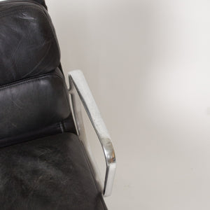 Listed for sale is a vintage low back Herman Miller aluminum group soft pad chair in black leather (multiple chairs are available).