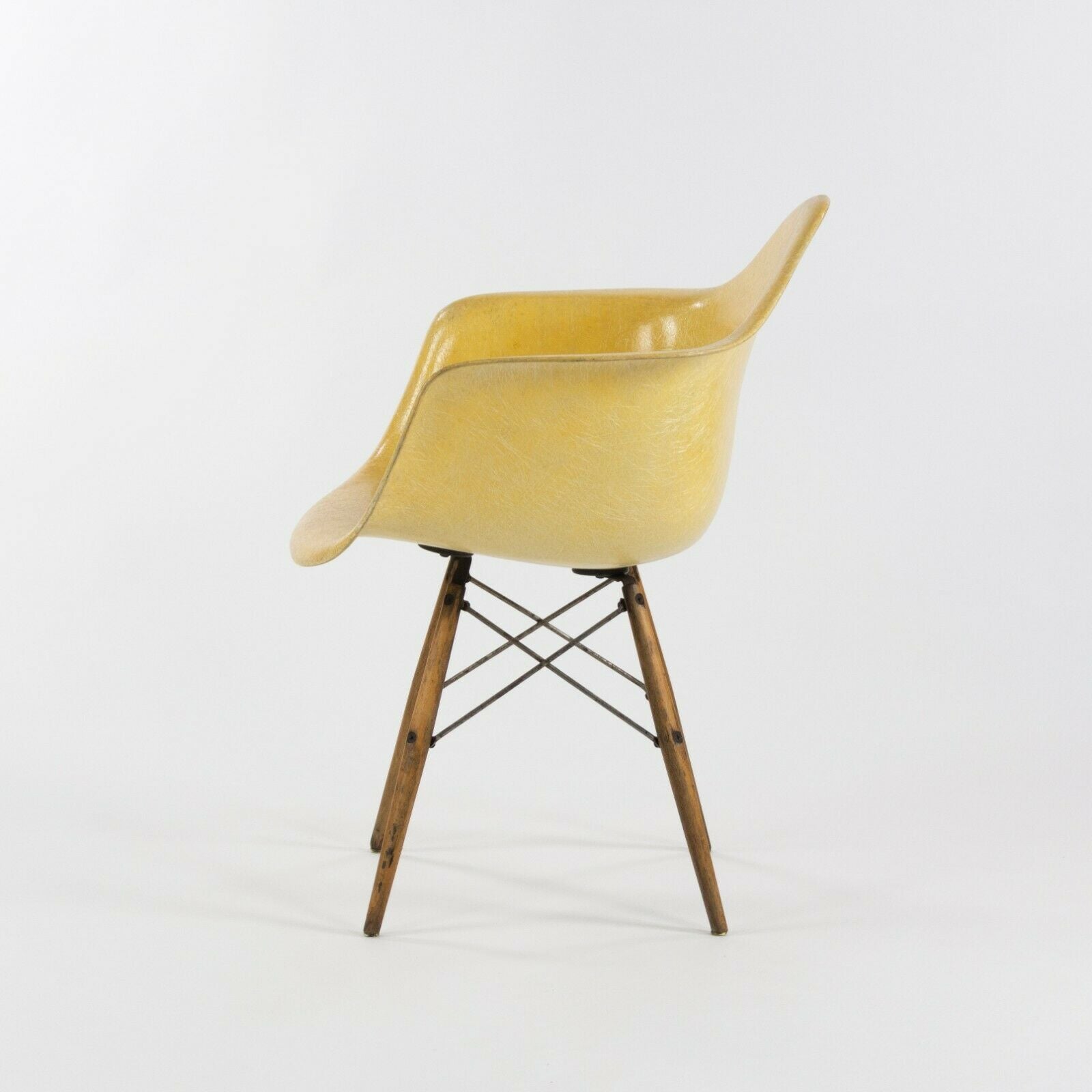 SOLD 1951 Herman Miller Eames Zenith DAW Lemon Yellow Arm Shell Chair w Dowel & Rope Edge