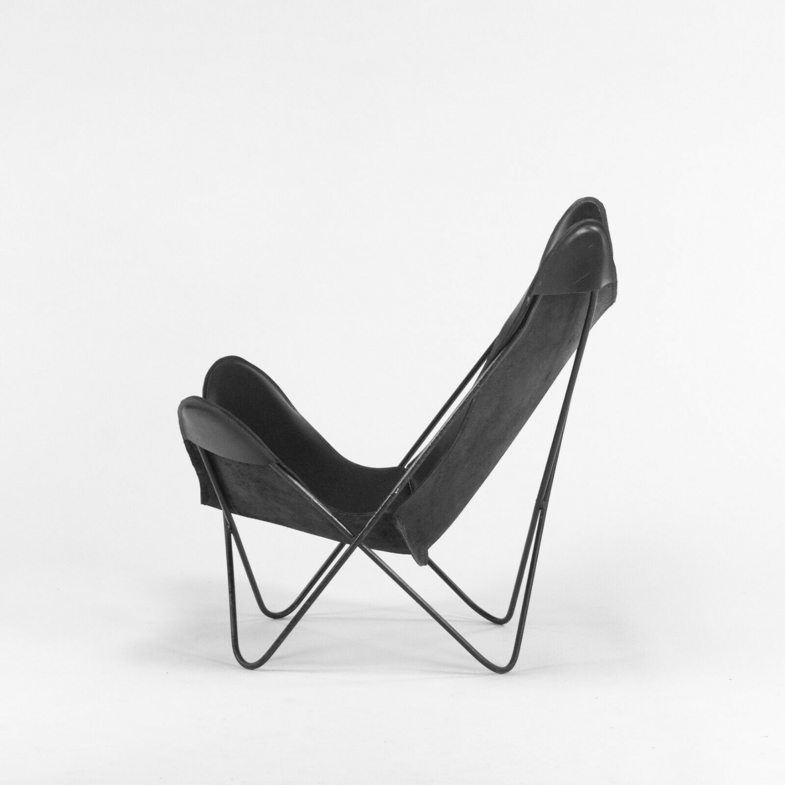 Listed for sale is a gorgeous C. 1950 vintage black leather Butterfly chair, designed by Jorge Ferrari Hardoy, Antonio Bonet, and Juan Kurchan for Knoll. This is a vintage example, which came from a Philadelphia estate along with a number of other period-correct Knoll pieces. This particular example has a gorgeous full-grain leather pad, which was presumably re-done in the last 25 years. The leather is high quality and looks terrific.