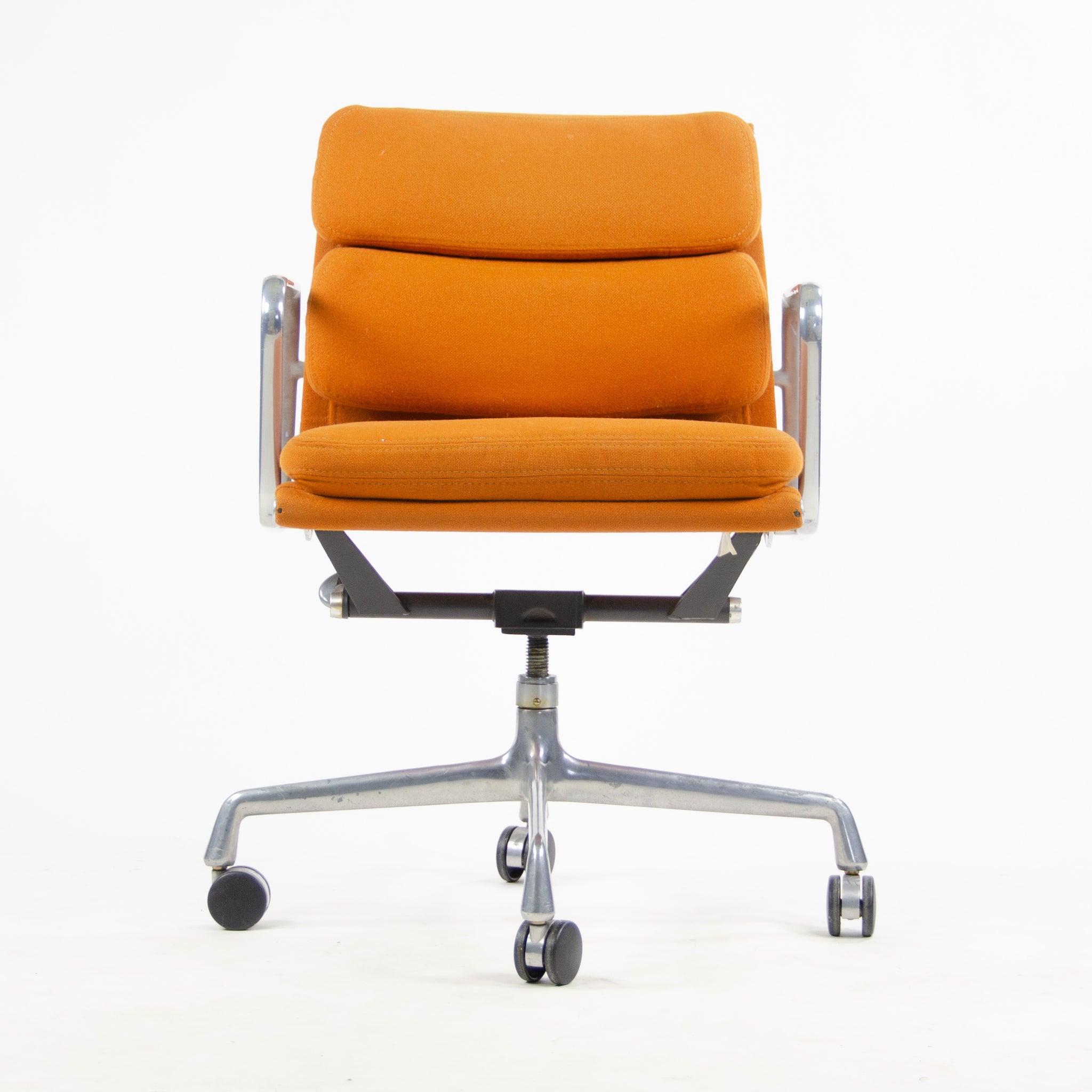 SOLD 1980 Eames Herman Miller Soft Pad Aluminum Group Desk Chair Orange Hopsack 4x