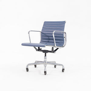 SOLD 2010s Aluminum Group Management Desk Chair, Model EA335 by Charles and Ray Eames for Herman Miller in Blue Leather 2x Available