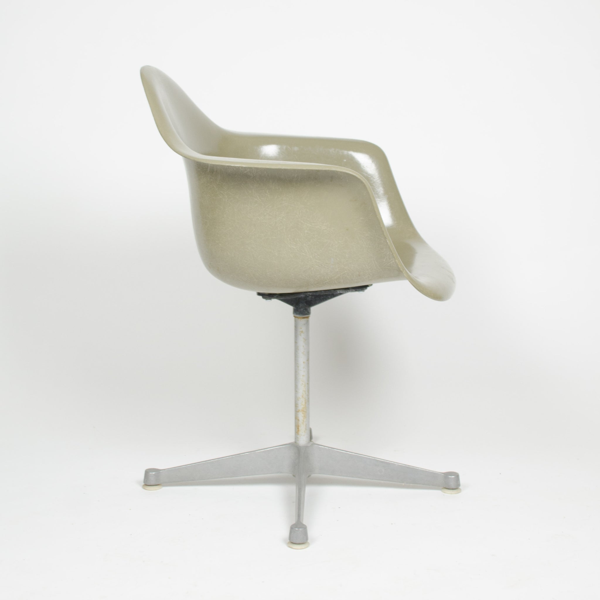 Listed for sale is a gray Herman Miller fiberglass arm shell chair, dating to the 1960's. Condition is excellent. Shocks are in good shape.