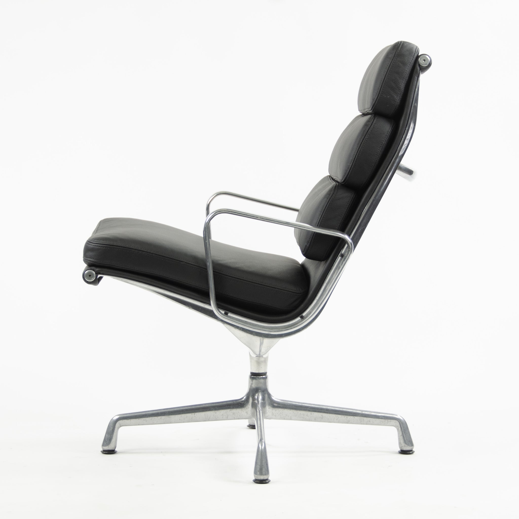 Listed for sale is an Eames soft pad lounge chair with gorgeous black upholstery.