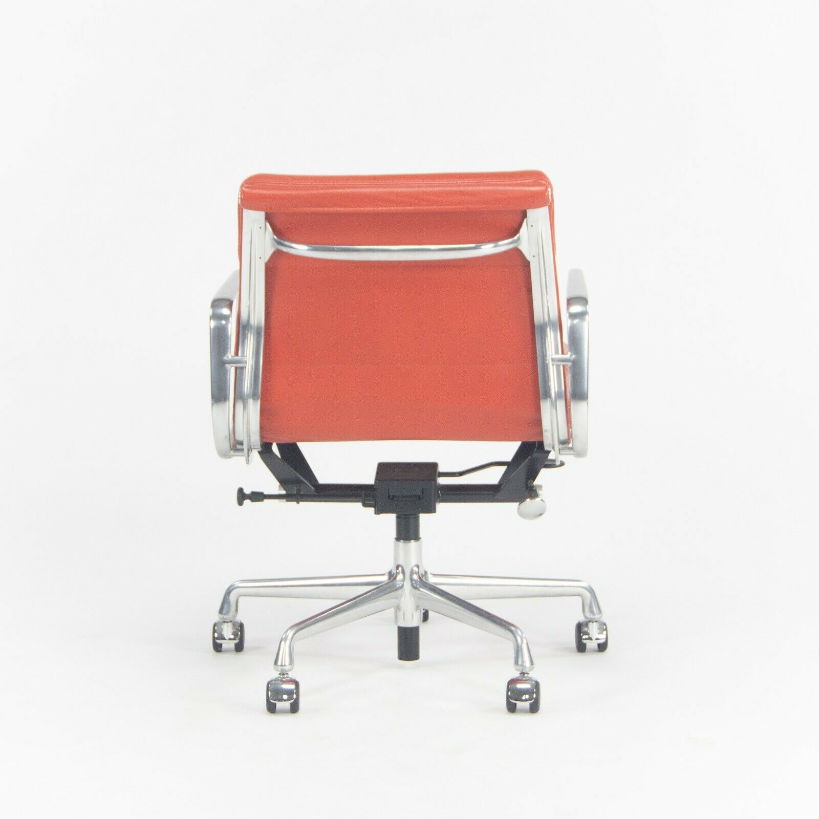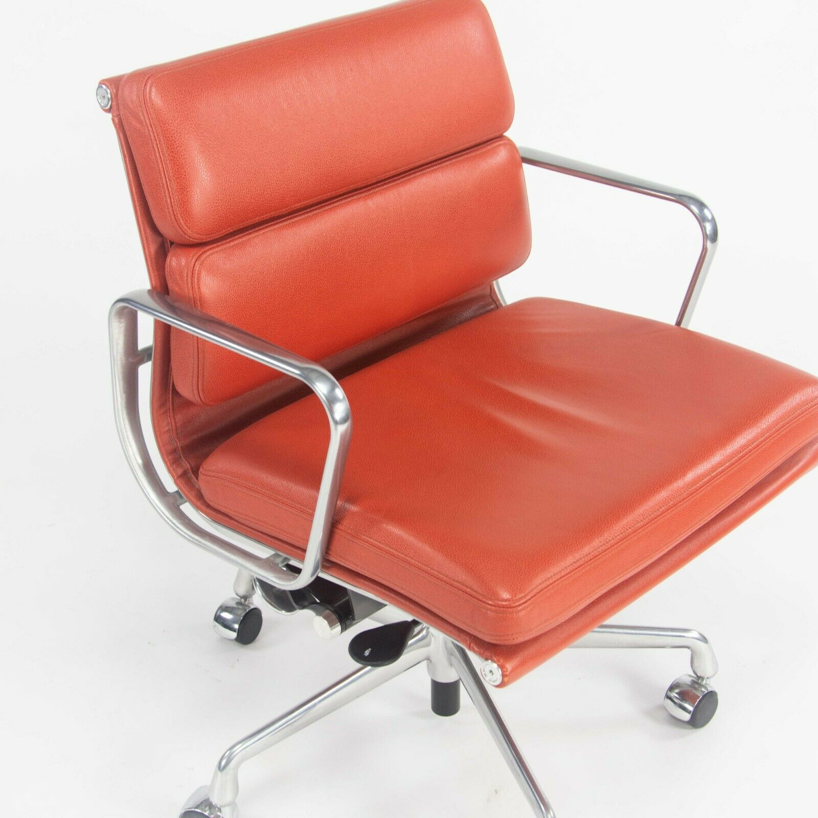 Listed for sale is a single (twelve chairs are available, but the price listed is for each chair) Herman Miller Eames aluminum group soft pad management desk chair in a gorgeous and highly upgraded red Edelman Full Grain leather. The chair was produced in 2010 and came from a boutique fashion office in New York. The material specified is VB14 Burnt Orange Edelman Full Grain Leather. The color reads as a bright red to our eyes and looks like what you see in the photos. Each chair also has a pneumatic lift. Condition overall is very good to excellent. They have light signs of wear from use and are generally in beautiful shape. See photos.