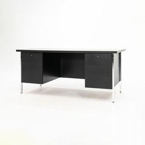 This is an original double pedestal desk, model 1503, initially designed by Florence Knoll in 1956. This example was manufactured by Knoll Associates in the early 1960s. It is constructed from steel and ebonized wood, and the piece has been freshly refinished. The legs are chromed steel.