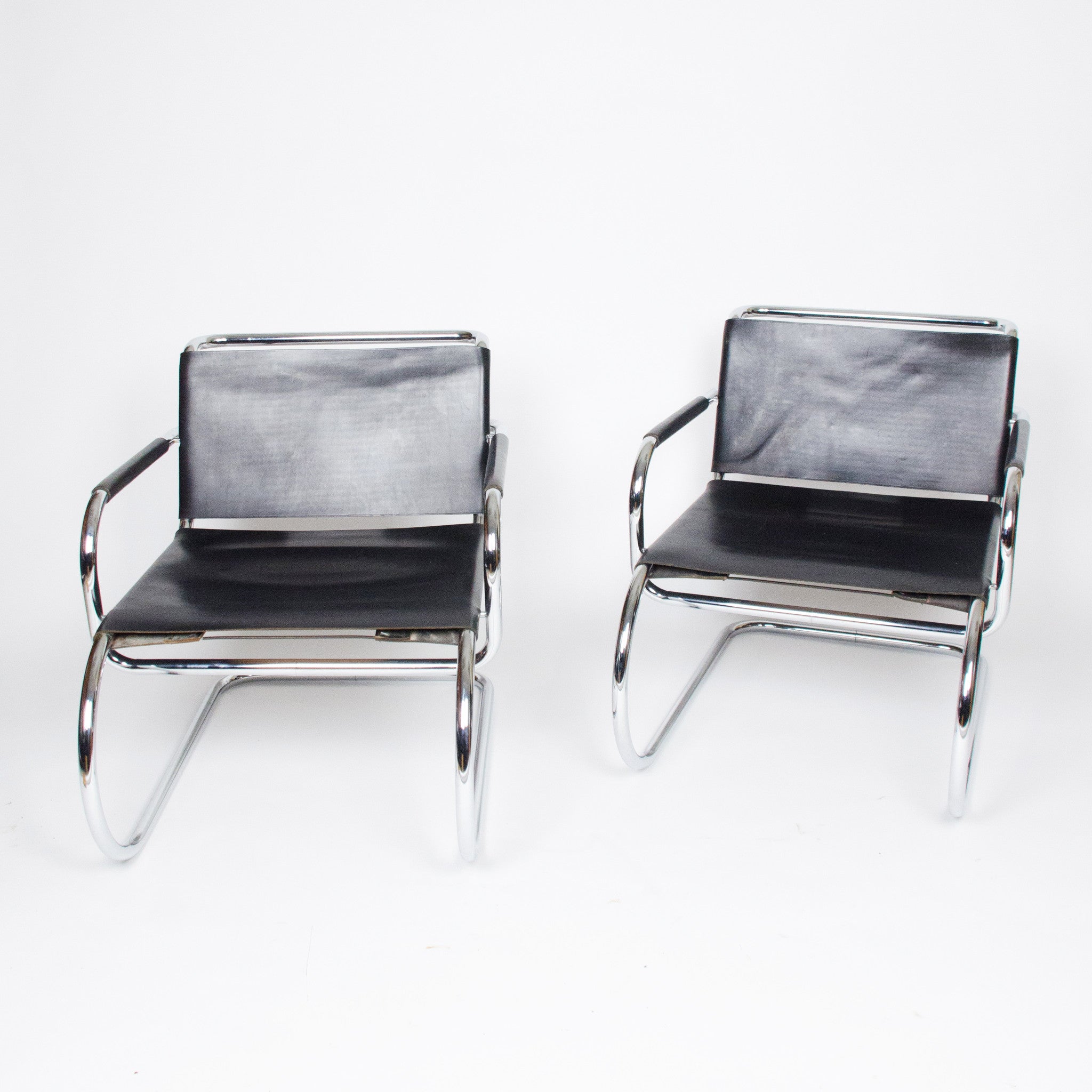 The armchairs are absolutely gorgeous and make reference to Mies Van Der Roe's MR lounge chairs. Uniquely, however, it has a fascinating and very complex arm detail. All pieces are original and of exceptionally high quality, as would be expected.