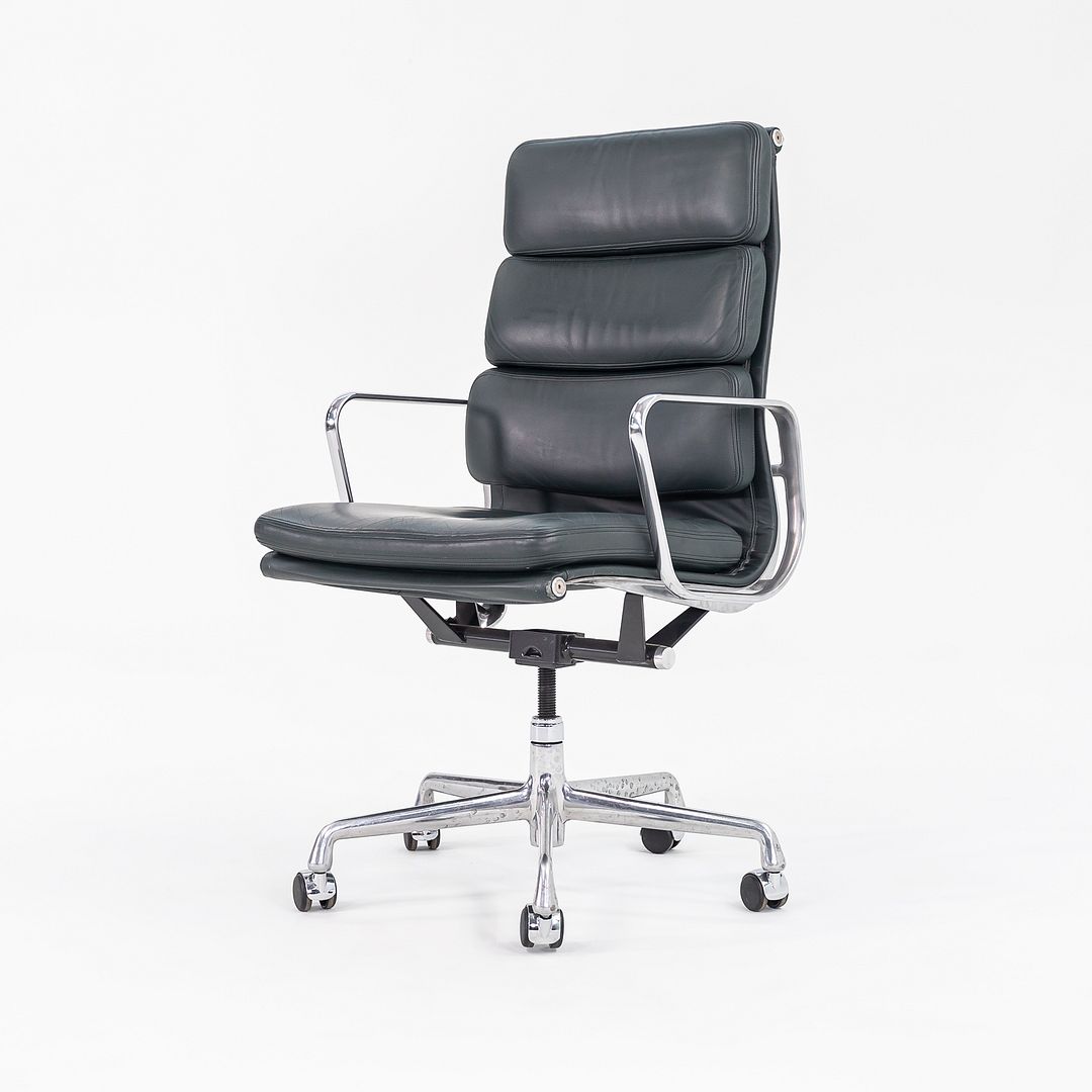 SOLD 2008 Soft Pad Executive Desk Chair, Model EA420 by Charles and Ray Eames for Herman Miller in Dark Green Leather